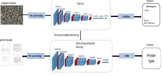 Document forgery detection is becoming increasingly important in the current era, as forgery techniques are available to even inexperienced users. Source printer identification is a method for identifying the source printer and classifying the questioned document into one of the printer classes. According to what we know, most earlier studies segmented documents into characters, words, and patches or cropped them to obtain large datasets. In contrast, in this paper, we worked with the document as a whole and a small dataset. This paper uses three techniques dependent on CNN to find the