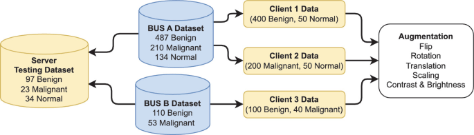 Breast cancer is a leading cause of death among women worldwide, emphasizing the need for early detection and accurate diagnosis. As such Ultrasound Imaging, a reliable and cost-effective tool, is used for this purpose, however the sensitive nature of medical data makes it challenging to develop accurate and private artificial intelligence models. A solution is Federated Learning as it is a promising technique for distributed machine learning on sensitive medical data while preserving patient privacy. However, training on non-Independent and non-Identically Distributed (non-IID) local datasets