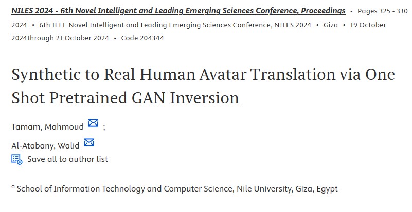 Synthetic to Real Human Avatar Translation via One Shot Pretrained GAN Inversion