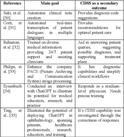 A Review of the Role of ChatGPT for Clinical Decision Support Systems