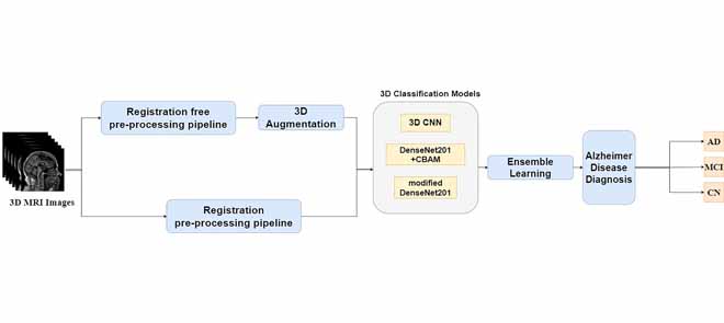 Alzheimer's disease (AD) is considered the 6 th leading cause of death worldwide. Early diagnosis of AD is not an easy task, and no preventive cures have been discovered yet. Having an accurate computer-aided system for the early detection of AD is important to help patients with AD. This study proposes a new approach for classifying disease stages. First, we worked on the MRI images and split them into an appropriate format to avoid data leakage. Subsequently, a simple and fast registration-free preprocessing pipeline was applied to the dataset. Numerous experiments were conducted to analyze