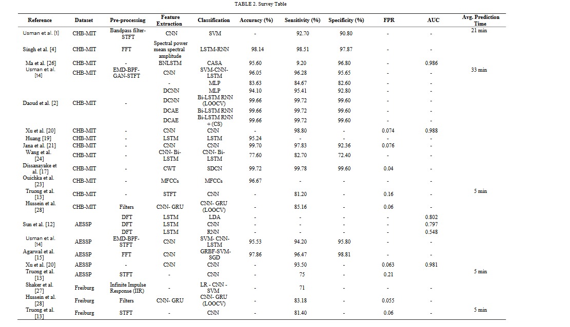 Epilepsy is a chronic nervous disorder, which disturbs the normal daily routine of an epileptic patient due to sudden seizure onset that may cause loss of consciousness. Seizures are periods of aberrant brain activity patterns. Early prediction of an epileptic seizure is critical for those who suffer from it as it will give them time to prepare for an incoming seizure and alert anyone in their close circle of contacts to aid them. This has been an active field of study, powered by the decreasing cost of non-invasive electroencephalogram (EEG) collecting equipment and the rapid evolution of