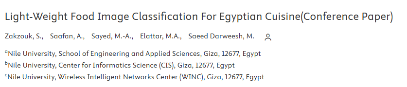 Light-Weight Food Image Classification For Egyptian Cuisine