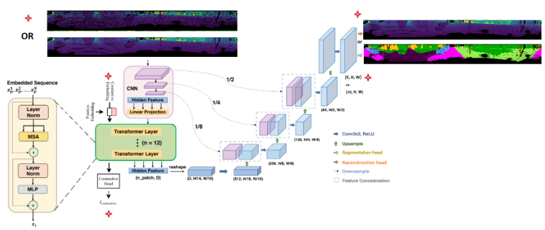 For the task of semantic segmentation of 2D or 3D inputs, Transformer architecture suffers limitation in the ability of localization because of lacking low-level details. Also for the Transformer to function well, it has to be pre-trained first. Still pre-training the Transformer is an open area of research. In this work, Transformer is integrated into the U-Net architecture as (Chen et al., 2021). The new architecture is trained to conduct semantic segmentation of 2D spherical images generated from projecting the 3D LiDAR point cloud. Such integration allows capturing the the local